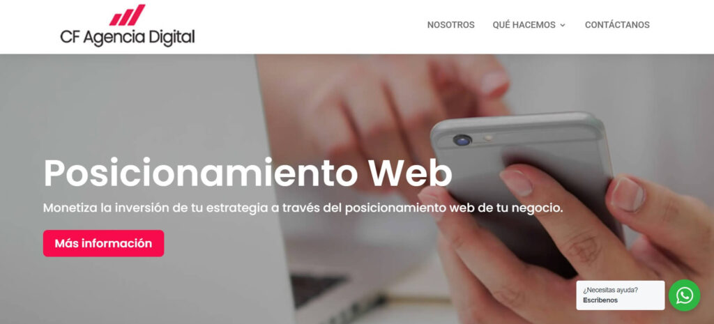 Con 17 años de experiencia, CF Agencia Digital ofrece servicios personalizados de marketing digital, incluyendo estrategias de posicionamiento web.